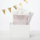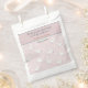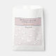 Super cute, pink, grey and white patterned favour bags feature sweet little baby lambs leaping over stars and clouds. At the top it says "Thank you for showering our baby with love! Then you personalise with the Mum and Dad to be's names and