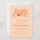 BABY LOVE! Bold and fun baby shower invitation. Peach, orange, and red. LOVE with heart on back of card.