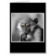 Black and white photograph of a baby cherry-crowned Mangabey monkey with beautiful brown eyes, contemplating life.