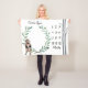 A watercolor woodland growth milestone baby blanket with a bear, wreath, and birch trees