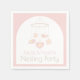 These cute pink and yellow napkins feature a birdy baby mobile. Perfect for a Nesting Party or Baby Shower for a baby girl. The baby mobile image is a whimsical watercolor style with birds, flowers, and a heart.