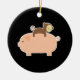 Baby Monkey Riding Backwards on a Pig Ceramic Tree Decoration