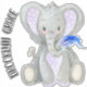 Adorable, hand painted artwork elephant with lavender and white polka dots and a sweet, loving face holding an elegantly painted feather of blues, purples and aqua. Includes your daughter or granddaughter's name (or short phrase) and makes a lovely wall decor item for a new baby's nursery or a child's bedroom. Copyright, Audrey Jeanne Roberts
