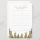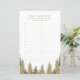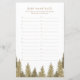 Entertain your baby shower guests with this 'Baby Name Race' game, featuring illustrated pine trees and gold typography.