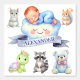 Transform your little one’s room into a dreamy wonderland with this adorable watercolor wallpaper, featuring a sleeping baby nestled on a smiling cloud and surrounded by soft pastel woodland animals. From gentle turtles and playful raccoons to sweet mice and teddy bears, every detail is designed to bring warmth, comfort, and joy to your nursery space.