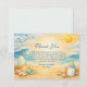 A cheerful surf-inspired baby shower design featuring sunny skies, rolling ocean waves, seashells, and playful beach elements. This light, summery artwork is ideal for a relaxed seaside celebration and can be easily personalized with names, dates, and event details while keeping a fresh coastal vibe.