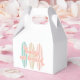 Baby On Board surfboard beach baby shower favour boxes in pink and aqua.