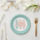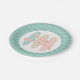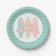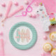 Baby On Board surfboard beach baby shower plates in pink and aqua.