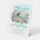 The "Baby on Board" tropical surfing-themed exotic floral design is a baby shower template that features a gender-neutral theme with a tropical flair. The design depicts a grouping of colourful surfboards with the ocean and a splashing wave amidst a beautiful tropical floral surround. The colour scheme consists of soft shades of green, blue, pink, and yellow, creating a soothing and inviting atmosphere. The typography is playful and fun, making it perfect for a baby shower celebration.