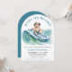 Celebrate the arrival of your bundle of joy with this adorable "Baby on Board" surfing-themed baby shower invitation. The unique arched design features a happy baby riding an ocean wave on a surfboard, all rendered in a soft watercolor style. This sweet and stylish invitation is the perfect way to get guests excited for your little one to surf onto the scene. It's easily customised with all your party details for a memorable and one-of-a-kind celebration.
