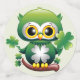 Cute Little St Patrick's Day Owl Cartoon Character standing on a branch and holding a Shamrock Clover. Original Vector Art Copyright BluedarkArt TheChameleonArt