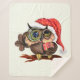 Baby Owl In Christmas Hat and Gift Sherpa Blanket