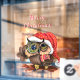 Baby Owl In Christmas Hat and Gifts For Everyone Window Cling