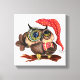 Canvas Print with Cute Baby Owl In Christmas Hat and Gift - Painting Funny Bird Fun Collection - Choose / Add Your Unique Text / Name / Colour - Make Your Special Gift - Resize and move or remove / add elements - image / text with customisation tool. Painting and Design by MIGNED. Please see my other projects / paintings. You can also transfer my designs to more than 1000 Zazzle products !
