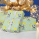 Cute baby panda with a bright yellow moon and stars on a pastel green background.