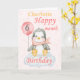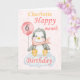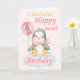 A cute 6 month baby penguin birthday card. The card features a baby girl penguin sitting on a cloud holding a balloon. A sweet design f or a little girl who will be half a year old. Add the child,s name to the front of the card to customise it for that special little girl then change the message inside to personalise the card.