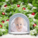 Baby Photo Dusty Blue Arch Snowflakes Christmas Snowglobe