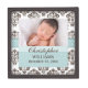 Customise this beautiful 3x3 inch eggshell blue and brown damask baby and infant photo gift and trinket jewellery box with a picture of your newborn and personalise it with his name and date of birth. This makes a lovely new baby or christening or baptism gift for a new mum or grandmother. Designed by Chrissy H. Studios, LLC.