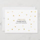 Modern gold photo baby birth announcement card to introduce your beautiful newborn baby. The front features a photo of your baby along with chic gold and black text for your baby's name and birth stats. The reverse is scattered with golden hearts surrounding your personal message and names in matching chic gold and black text. Designed by Thisisnotme©