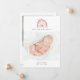 Modern and whimsical birth announcement card featuring a hand drawn illustration of a pastel rainbow. You can add your newborn baby's picture in the middle and the baby stats at the bottom. You can also add a second picture with a message on the back. Perfect for your miracle baby girl. The rainbow motif is used a lot when you had a difficult pregnancy or after a loss.