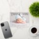 Baby Photo Thank You Modern Heart Birth Template Announcement Foil Postcard features a one of your favourite photos of your newborn baby boy or girl. The front features "Thank You" in hand lettered calligraphy script in real silver foil, accented with a love heart. Below your photos add additional information such as your newborn baby's name and birth information. On the reverse add your personalised custom message of thanks from the parents and family of the newborn. PHOTO TIP: centre your photos before uploading to Zazzle. Designed by ©Evco Studio www.zazzle.com/store/evcostudio