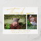 Baby Photo Thank You Modern Script Birth Template Announcement Foil Postcard features two of your favourite photos of your newborn baby boy or baby girl. The front features "Thank You" in hand lettered calligraphy script in real gold foil. Below your photos add additional information such as your newborn baby's name and birth information. On the reverse add your personalised custom message of thanks from the parents and family of the newborn. PHOTO TIP: centre your photos before uploading to Zazzle. Designed by ©Evco Studio www.zazzle.com/store/evcostudio