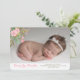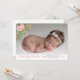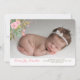 A delicate cluster of pink flowers grace the corner of this sweet, photo, birth announcement. Just add your little love's photo to make it yours. (<a href="https://www.freepik.com/free-photos-vectors/people">People photo created by yanalya - www.freepik.com</a>). (<a href="https://www.freepik.com/free-photos-vectors/frame">Frame vector created by BiZkettE1 - www.freepik.com</a>). <br/><br/>The card is easy to customise with your wording, font, font colour, paper shape options and choice of six paper types.<br/><br/>Not exactly what you're looking for? All our products can be custom designed to meet your needs at no extra charge.<br/><br/>Simply contact us at askcottonlamb@gmail.com.<br/><br/>Coordinating products available: Just ask us!"