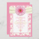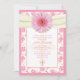 You can pesonalize the text on this baby girl pink gerbera daisy, ivory floral damask and ribbon baptism or christening invitation. With changes to the text, this would make a really nice holy first communion invitation as well. You can also change the paper type. There are a variety of paper types to choose from and this design would look great with many of them. To change the text, use the personalise option. For more extensive changes, such as changes to the font, font colour, font size, text layout or background colour, use the customise option. The colours on this invitation are ivory, pale pink, and white. You can also remove one or both of the crosses using customise it.