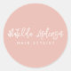 Baby pink modern minimal elegant script classic round sticker