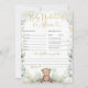 Baby Predictions & Advice Teddy Bear Greenery Game Invitation