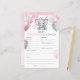 This baby predictions shower game card features pink and grey baby girl elephant with balloons and confetti. Perfect for your guests to play along.
