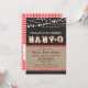 This rustic co-ed baby shower invitation is perfect for a backyard BBQ. It features string lights, chalkboard, burlap and gingham. Diaper raffle ticket wording can be customised on the back of the invitation. It is perfect for a casual, couples shower.