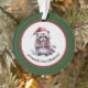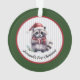This charming ornament features a baby raccoon wearing a red scarf and offering a gift. The raccoon is wearing a Santa's hat, and is set against light gray pin stripes that are bordered in festive red and green. The text is for someone's first Christmas - a baby or pet or anyone - but you can change the text to say Merry Christmas or whatever you like.