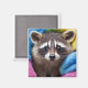 A baby racoon snuggled up in rainbow blankets. This little guy is a very special addition to the Rainbow Critters Collection, fondly dedicated to the City of Toronto. This lovely little trash panda joins the cast of loveable house pets, whether he's invited or not.