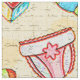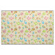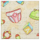 The fabric pattern has baby items of diapers, building blocks, knit hats, mittens, bottles, mugs, and more.