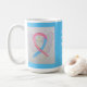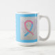 Baby Safe Haven uses a pink and blue awareness ribbon to show support for its awareness. This custom mug features two pink and blue awareness ribbon guardian angel art paintings with the message "I Hope and Support Baby Safe Haven Awareness!" The custom pink and blue awareness guardian angel ribbon art picture coffee cups or mugs can be customised with personalised messages to make great cause mugs for awareness fundraisers, awareness cup gifts, or other special events or cause support occasions. Make your own customised words for a personal message of hope and support to share!