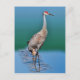 This one-week-old Sandhill Crane chick seems curious about the world as he peeks out from behind his regal mother.   It makes a terrific postcard.