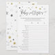 This baby shower game card features a script modern font on white background with grey and gold stars, perfect for a gender reveal party! Please check all the games from this collection below.