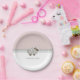 This paper plate features a light pink and white plate with white polka dots and grey stripes with a baby sheep at the centre of the plate. Customise the guest of honour and date. Great idea for a birthday party!! If you need assistance or matching items, please contact me.