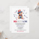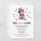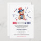 Baby Shower invitation with a bear, stars, and the text "red, white & due" for a 4th of July-themed party. Personalise it with your party details, RSVP information, and registry details.