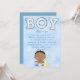 It's a Boy! Adorable personalised baby boy baby shower thank you cards. Just fill in the details and you're all set to go. Baby blue background, a BOY banner with a black baby boy holding a yellow duck. Thank you sentiment that reads: "Thank you for coming to my baby shower and helping celebrate the upcoming arrival of our new baby. Thank you for the wonderful gift. Your kindness and generosity are greatly appreciated. We look forward to introducing our little one soon." All our products can be custom designed to meet your needs at no extra charge. Simply contact us through our store. Coordinating products available: Just ask us!