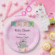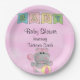 It's a Girl! Adorable personalised baby girl baby shower paper plates. Baby pink background, a baby banner with a baby hippo playing with a rattle and ball. Just fill in the details and you're all set to go. All our products can be custom designed to meet your needs at no extra charge. Simply contact us through our store. Coordinating products available: Just ask us!