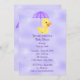 Adorable personalised baby shower invitation. Just fill in the details and you're all set to go. Baby lilac background, a loveable baby rubber duck holding a purple umbrella. The back of the invitation has a the same duck graphic. All our products can be custom designed to meet your needs at no extra charge. Simply contact us through our store. Coordinating products available: Just ask us!