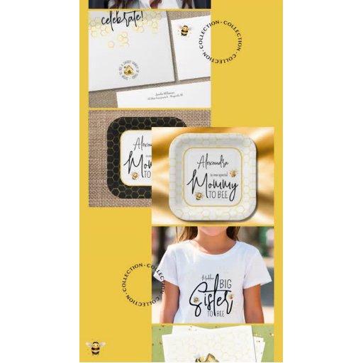 Honeycomb in the background with an adorable, illustrated bee front and centre. Copy reads, "Thank you for bee-ing here." Guest of honour's name is present, as well. Perfect for baby girl, baby boy or gender neutral events. Be sure to check out other coordinating pieces in the collection.