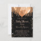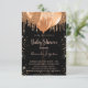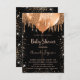 For an elegant, modern baby shower. A stylish black background. Decorated with dark faux gold glitter and balloons. Personalise and add a name, and party details. The name is written with a hand lettered style script. Gender neutral.