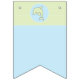 Baby Shower "Blue/Dolphin in a Bubble" design, Swallowtail shaped, Bunting Banner. This Blue/Dolphin in a Bubble, baby shower banner is made up of 16 customisable swallowtail shaped flags. Personalise the text by choosing your favourite font colour, size, style and wording.
