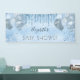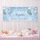 For an elegant Baby Shower. A light blue faux metallic looking background. Decorated with faux glitter drips, paint dripping look, glitter dust and blue and silver coloured balloons. Personalise and add a name. Perfect both as a welcome banner or as party decor.