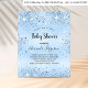For a baby shower, celebrating a baby boy. A light blue background. Decorated with faux sparkles. Templates for the mom to-be's name and party details. The name and the text: Baby Shower are written with a hand lettered style script