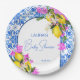 Baby Shower Blue Tiles Lemons bougainvillea Paper Plate