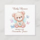 Create a personalised baby shower enclosure card as part of your baby shower invites. The front of the card has, "Baby Shower," with the name of the mum-to-be. The back has a personalised message that you can change. Of note: the current message encourages guests to bring a book in lieu of a traditional card. Features Bears & Butterflies design. Use the template to personalise.